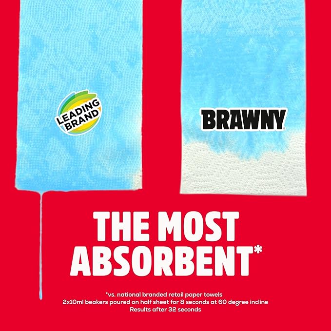 Brawny 3-Ply Paper Towels deliver unmatched strength & absorbency with 6 double rolls (76 sheets each)—the only national brand with 3-ply durability. Customize sheet sizes (quarter/half/full) to reduce waste, tackling mud, grime & kitchen spills. Sustainably sourced for eco-conscious cleaning.