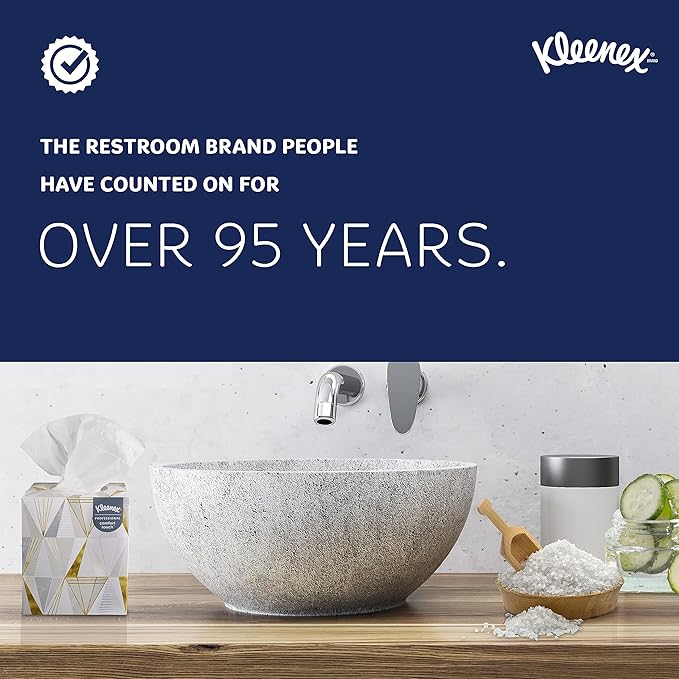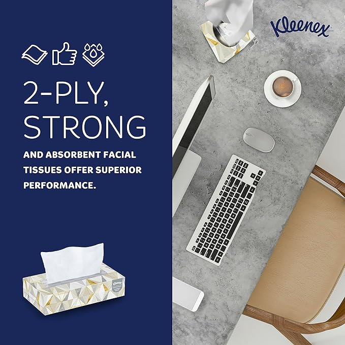 Kleenex Bulk Facial Tissues (1,500 sheets, 12 boxes) offer trusted softness & strength in 2-ply white tissues (8.3″x7.8″). The Signal Sheet (last 10 cream-colored) alerts you to refills, while FSC certification ensures eco-friendly sourcing.